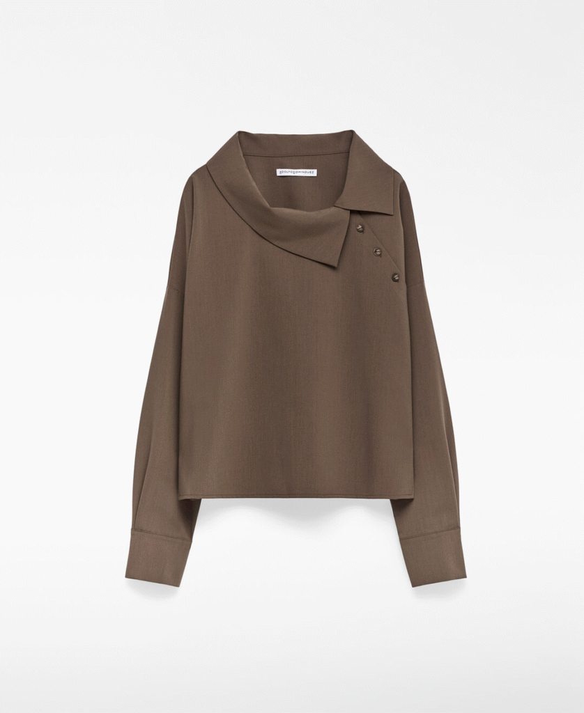 Asymmetrical Lapel Collar Shirt Woman