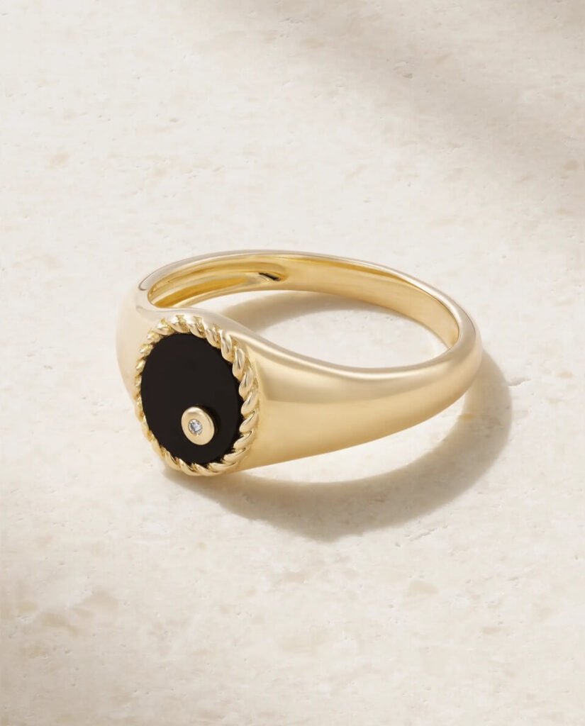 Baby chevalière ovale onyx or jaune